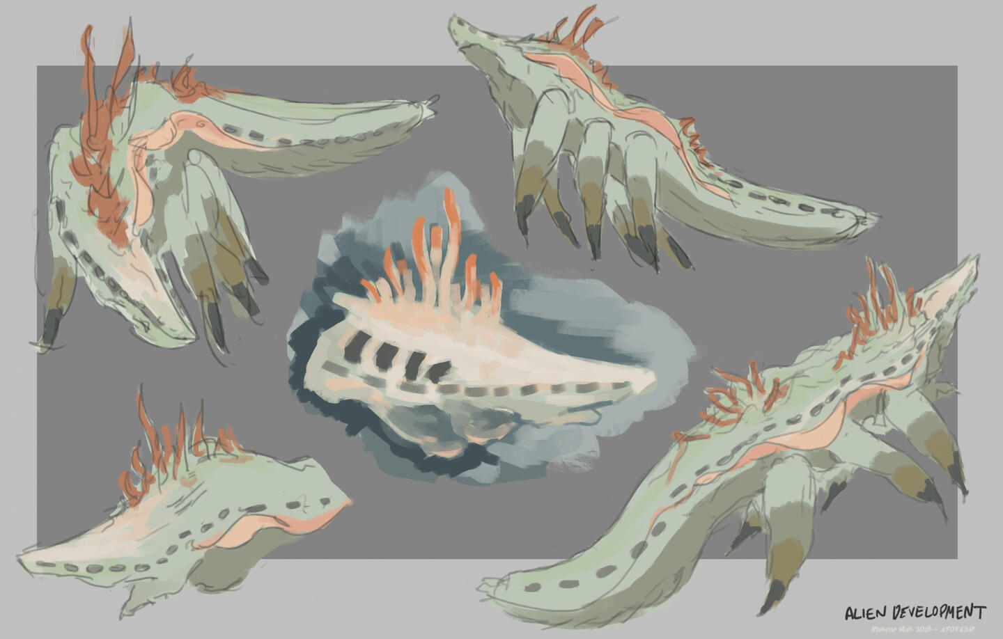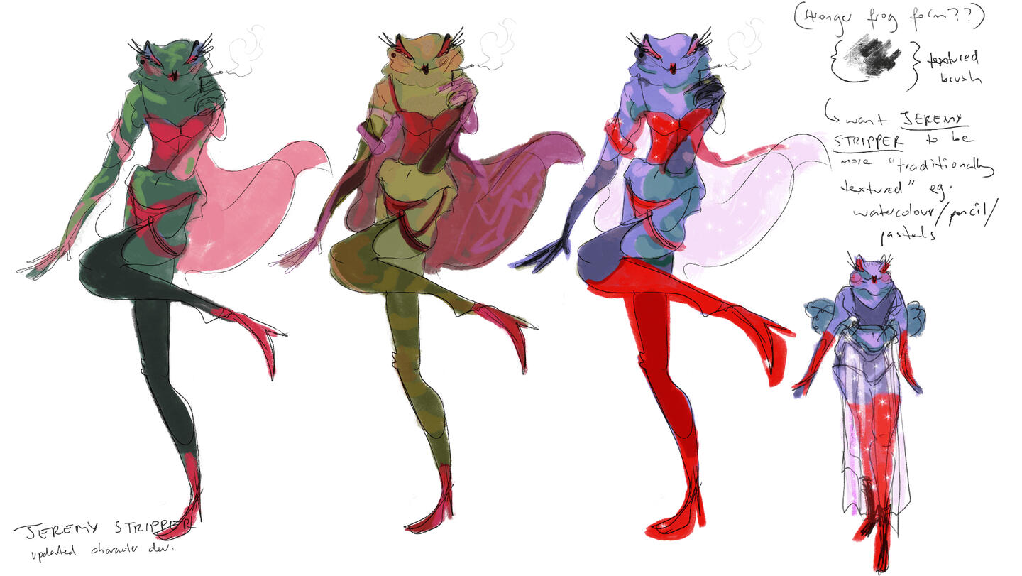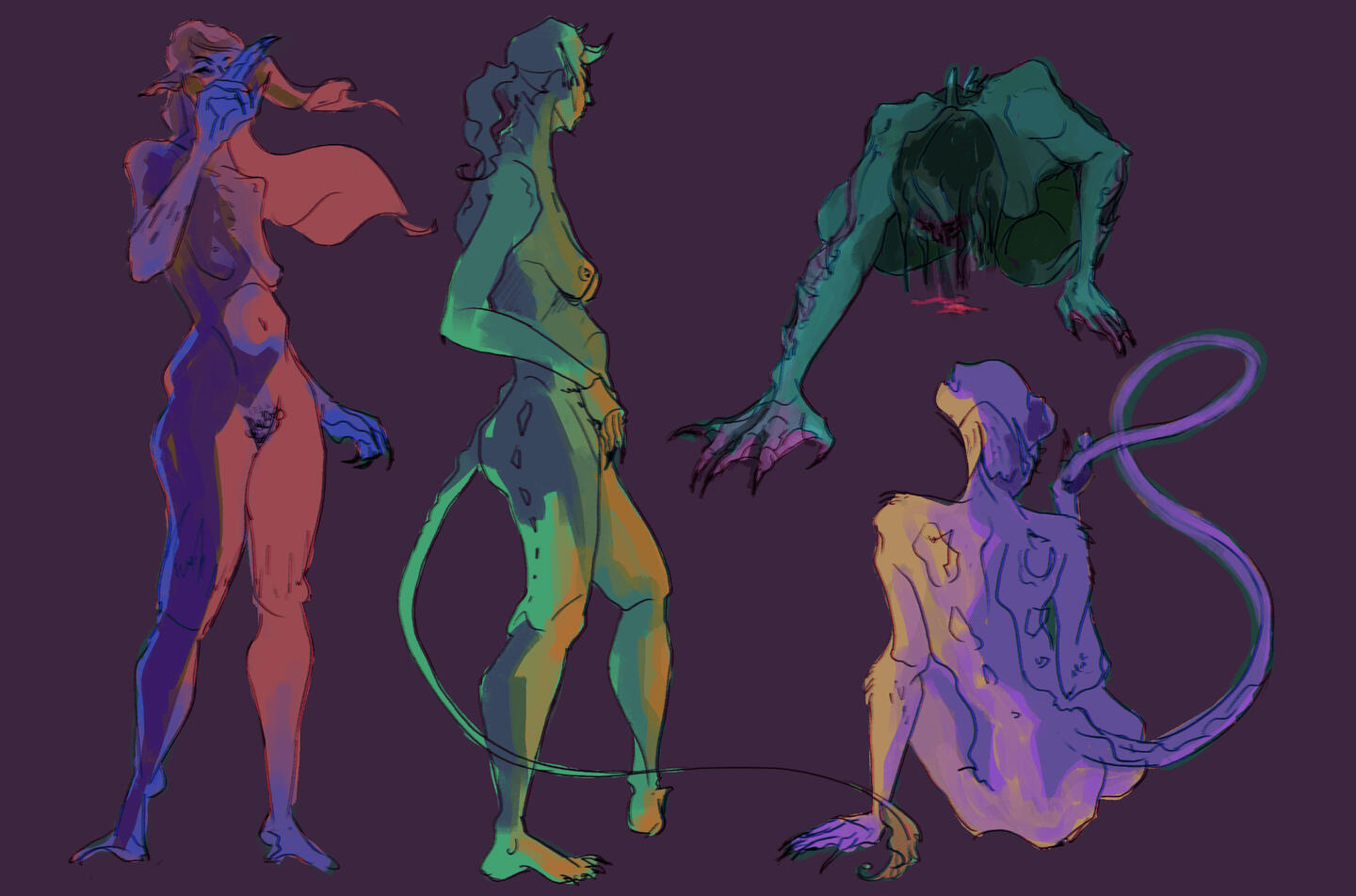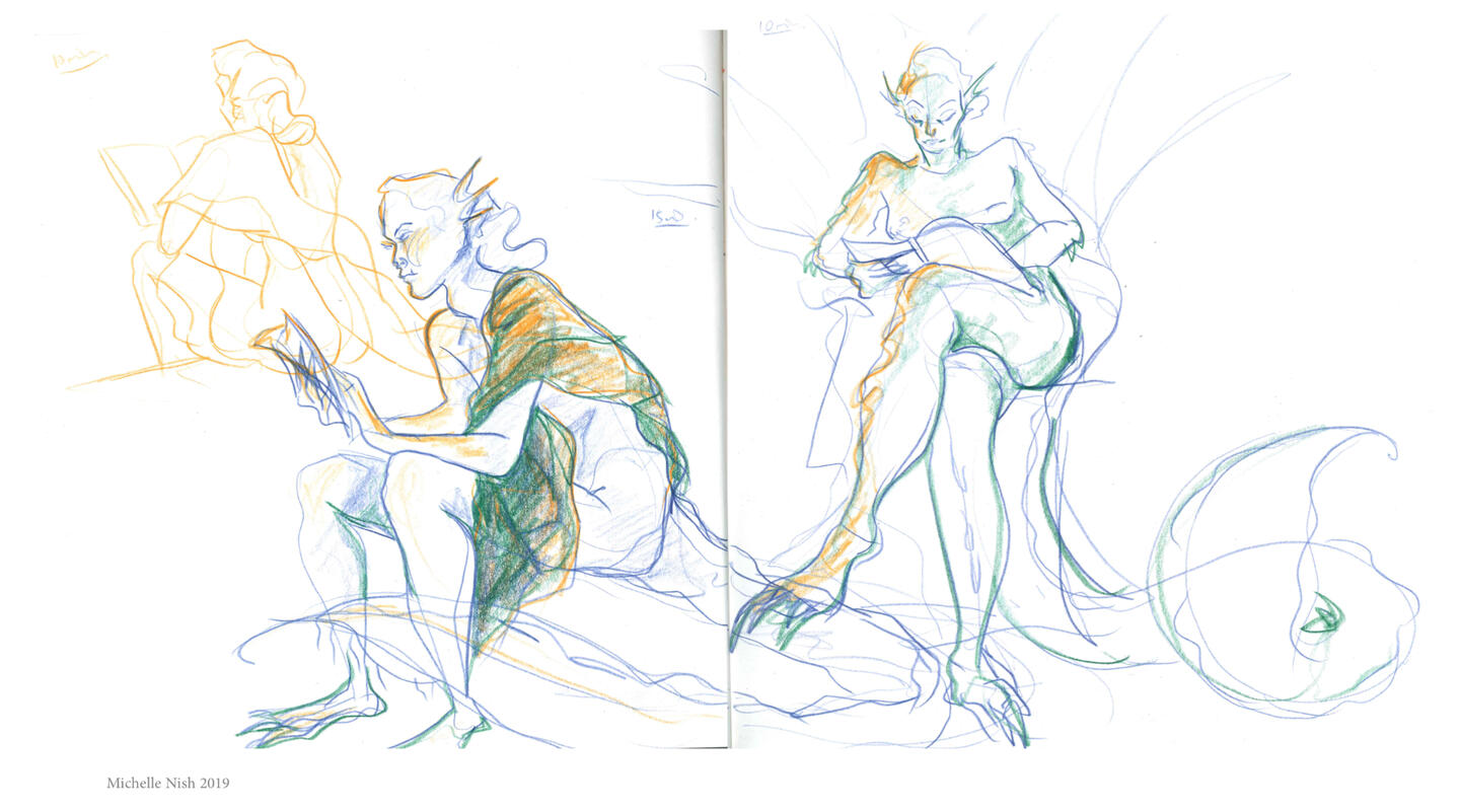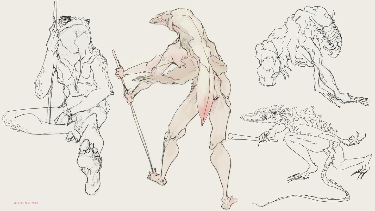 Here I morphed together animal life studies and lifedrawing to experiment and create new character designs.